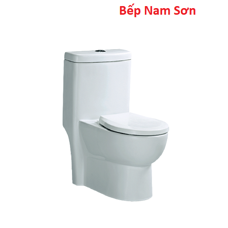 Bồn cầu liền khối, dễ vệ sinh, nắp rơi êm không gây tiếng động.