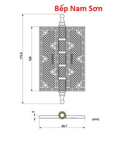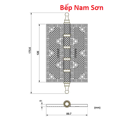 Sản phẩm bản lề lá đồng thau đúc nổi hoa văn dày 5mm, độ bền cao.