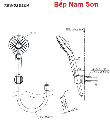 Lưu ý: Bao gồm gác sen, không bao gồm cút nối tường