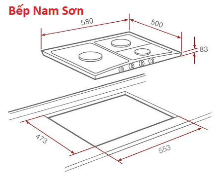 Kích thước lắp đặt: 553R x 473S mm