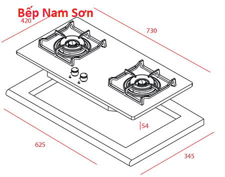 Kích thước lắp đặt: 625R x 345S mm
