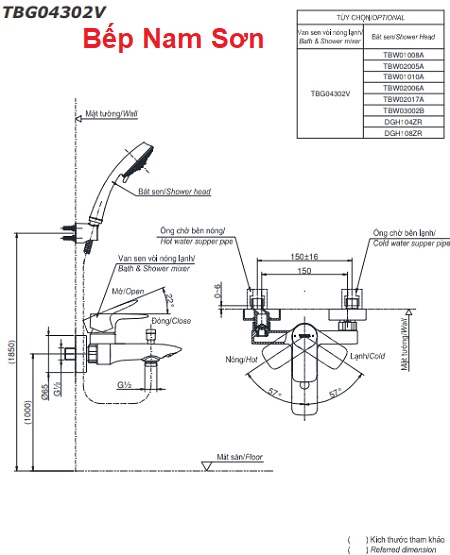 Thông tin sản phẩm Bộ sen tắm GA TBG04302V/TBW02006A: