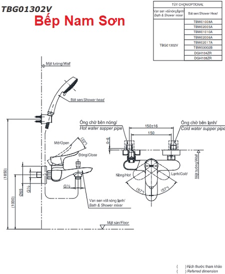 Thông tin sản phẩm Bộ sen tắm GO TBG01302V/TBW01010A: