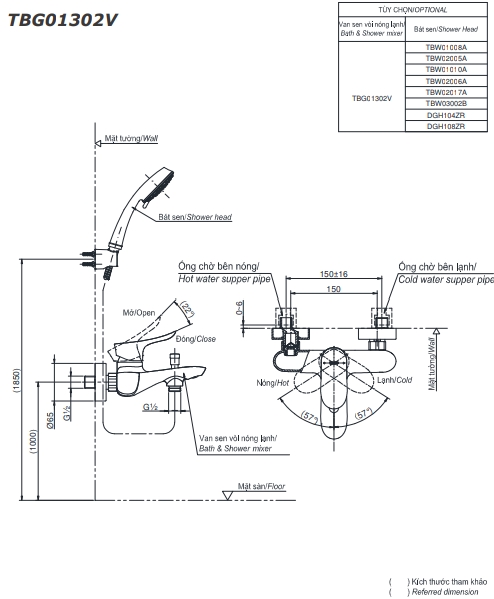 Thông tin sản phẩm Bộ sen tắm GO TBG01302V/TBW02017A: