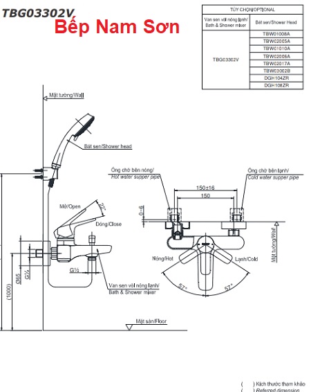 Thông tin sản phẩm Bộ sen tắm GS TBG03302V/TBW02005A: