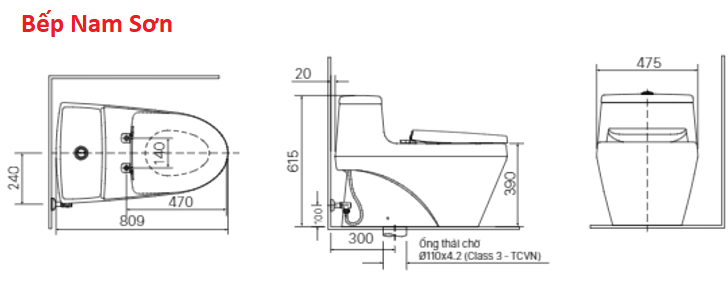 Thông số kỹ thuật bồn cầu 1 khối: