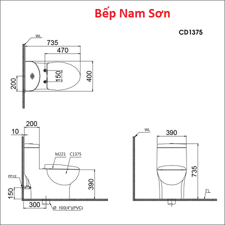 Thông tin sản phẩm Bồn cầu CD1375 + TAF200H: