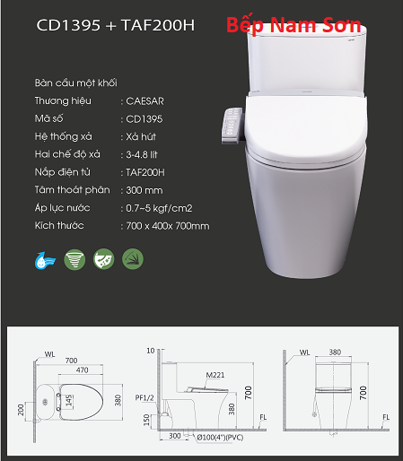 Thông tin sản phẩm Bồn cầu CD1395 – TAF200H:
