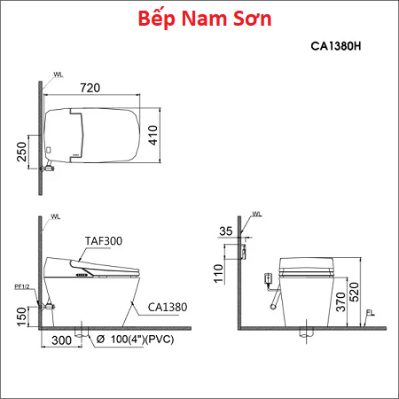 Thông tin sản phẩm Bồn cầu điện tử CA1380H: