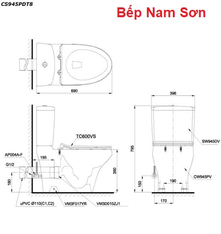 Thông tin sản phẩm Bồn cầu Toto CS945PDT8: