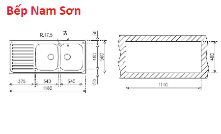 Kiểu dáng 2 hộc rửa và 1 bàn chờ lắp nổi: