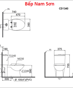Bàn Cầu hai khối kết hợp với nắp điện tử – CD1340 – TAF200H