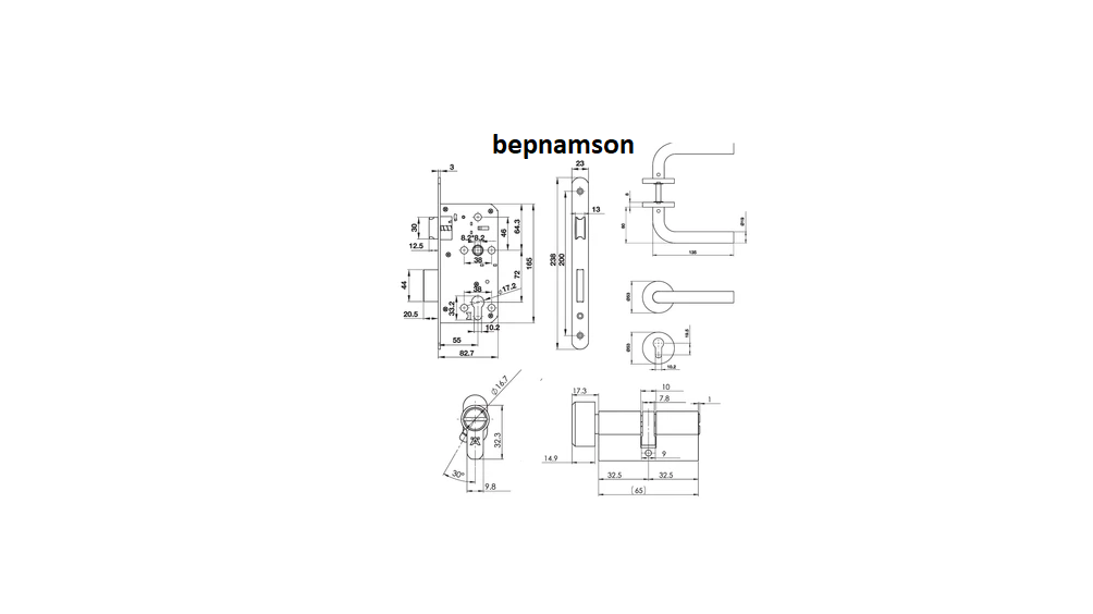 Thân khóa: Khoảng cách từ cạnh cửa đến tâm lỗ ruột khóa: 55 mm , CC: 72 mm, chốt chết xoay 2 vòng