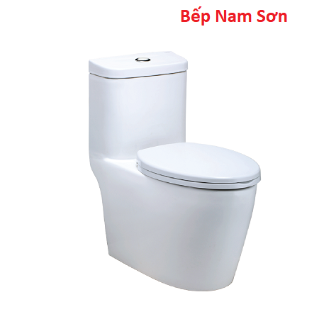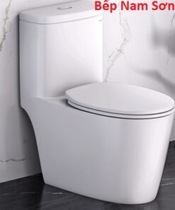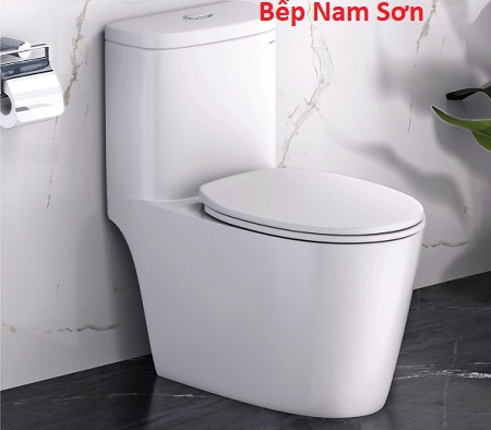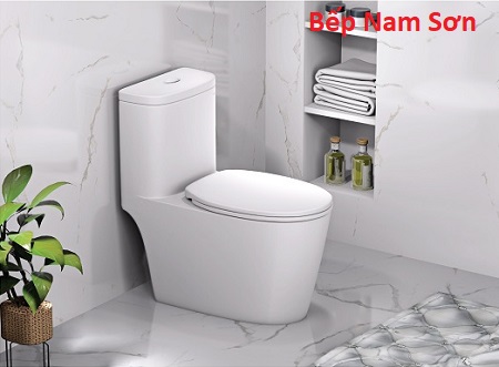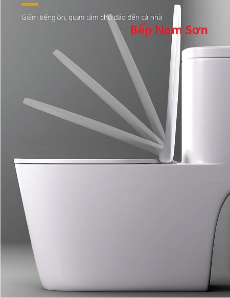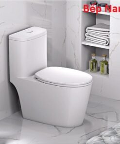 Bồn cầu liền khối, dễ vệ sinh, nắp rơi êm không gây tiếng động.