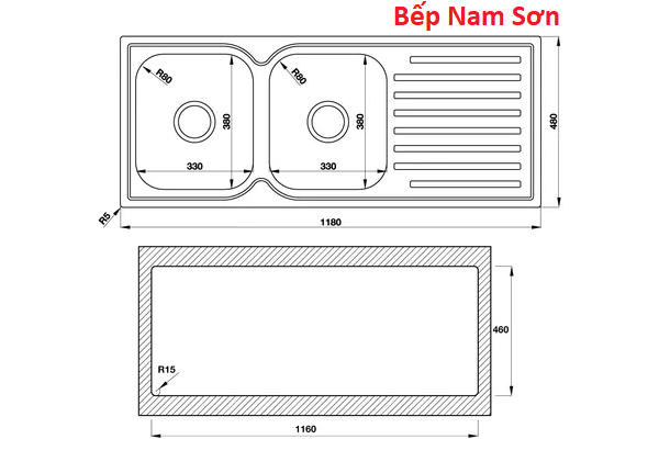 Thông tin sản phẩm kích thước chậu rửa đôi: