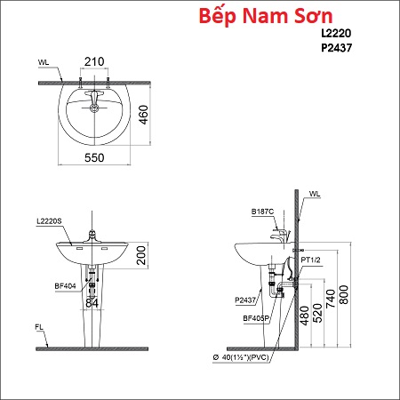 Thông tin sản phẩm Lavabo Treo Tường L2220 – P2445: