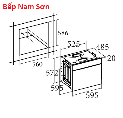 Kích thước lắp đặt: 560R x 586S mm