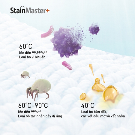 Chế độ diệt khuẩn toàn diện – Bao gồm chế độ giặt, sấy khô và vệ sinh lồng giặt tự động