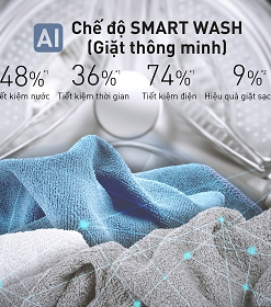 AI Smart Wash – Cảm biến thông minh chọn chu trình giặt phù hợp, tiết kiệm điện & nước.
