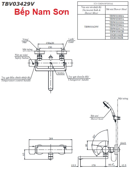 Sen tắm nhiệt độ TBV03429V/TBW03002B: