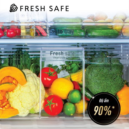 Duy trì độ ẩm 90%* và mức nhiệt độ không đổi cho trái cây và rau củ tươi xanh