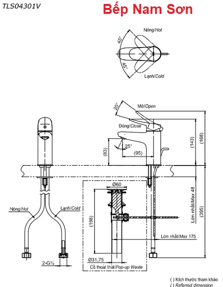 Thông số kỹ thuật Vòi chậu nóng lạnh LF TLS04301V: