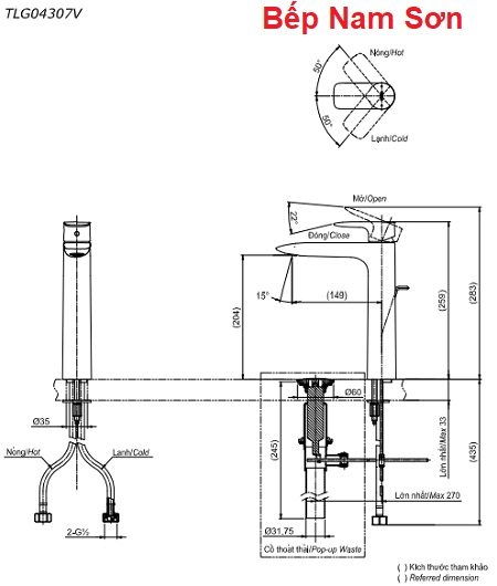 Thông số kỹ thuật Vòi nóng lạnh GA TLG04307V: