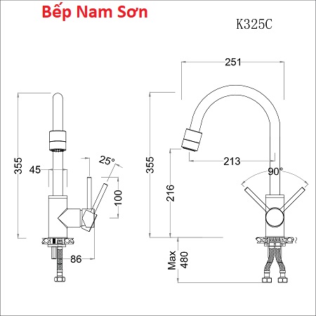Vòi bếp có 2 đường nước nóng lạnh, điều chình nhiệt độ linh hoạt.