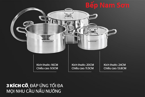 Bộ nồi 3 món 16- 20- 24cm, đáp ứng đa dạng nhu cầu nấu nướng