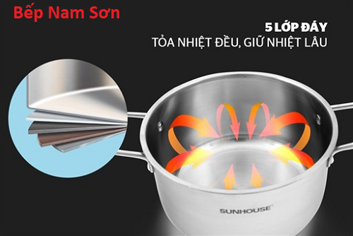 5 lớp đáy tỏa nhiệt đều, giữ nhiệt lâu, hạn chế cháy khét